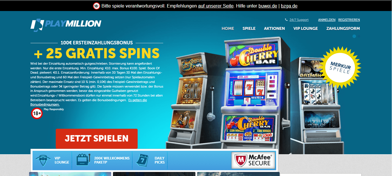 PlayMillion Casino ist ein schickes, modernes Online-Casino mit einem benutzerfreundlichen Layout für Spieler. PlayMillion Casino bietet eine große Auswahl an beliebten Online-Video-Slots und Casino-Spielen, da es von führenden Anbietern der Branche betrieben wird, darunter NetEnt, Play'n GO und Yggdrasil Gaming. Sie sind von der UK Gambling Commission, der Malta Gaming Authority und Lotterien lizenziert.