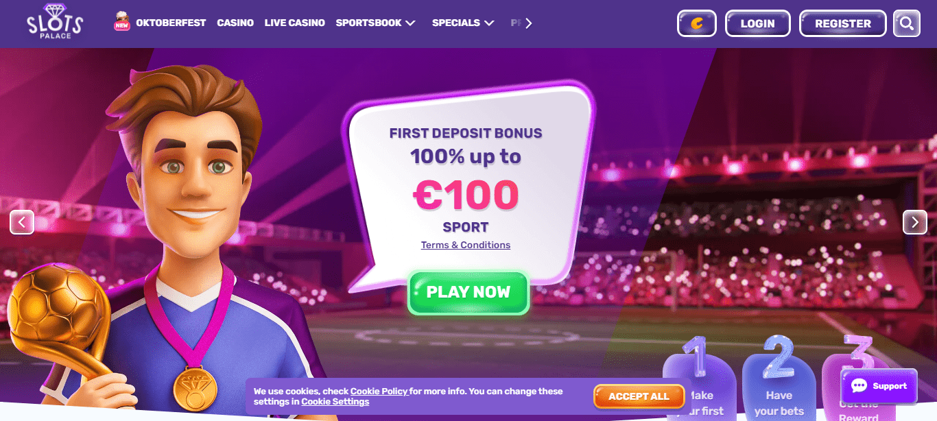 Nein, SlotsPalace bietet zwar viele Slots, aber es gibt ebenso eine bemerkenswerte Anzahl an Alternativen. Damit meinen wir nicht nur das Live Casino, sogar Sportwetten gibt es auf der SlotsPalace-Webseite.